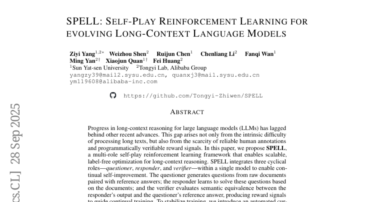 SPELL: Self-Play Reinforcement Learning for evolving Long-Context Language Models