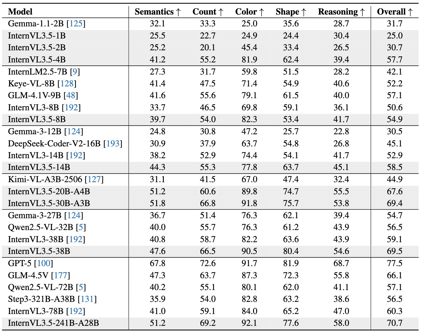 | InternVL3.5-38B | 5.5B | 32.8B | 38.4B | 🤗 link | 🤖 link |