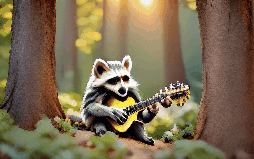 | A cute happy Corgi playing in park, sunset, pixel. | A cute happy Corgi playing in park, sunset, animated style. | A cute raccoon playing guitar in the beach. | A cute raccoon playing guitar in the forest. |