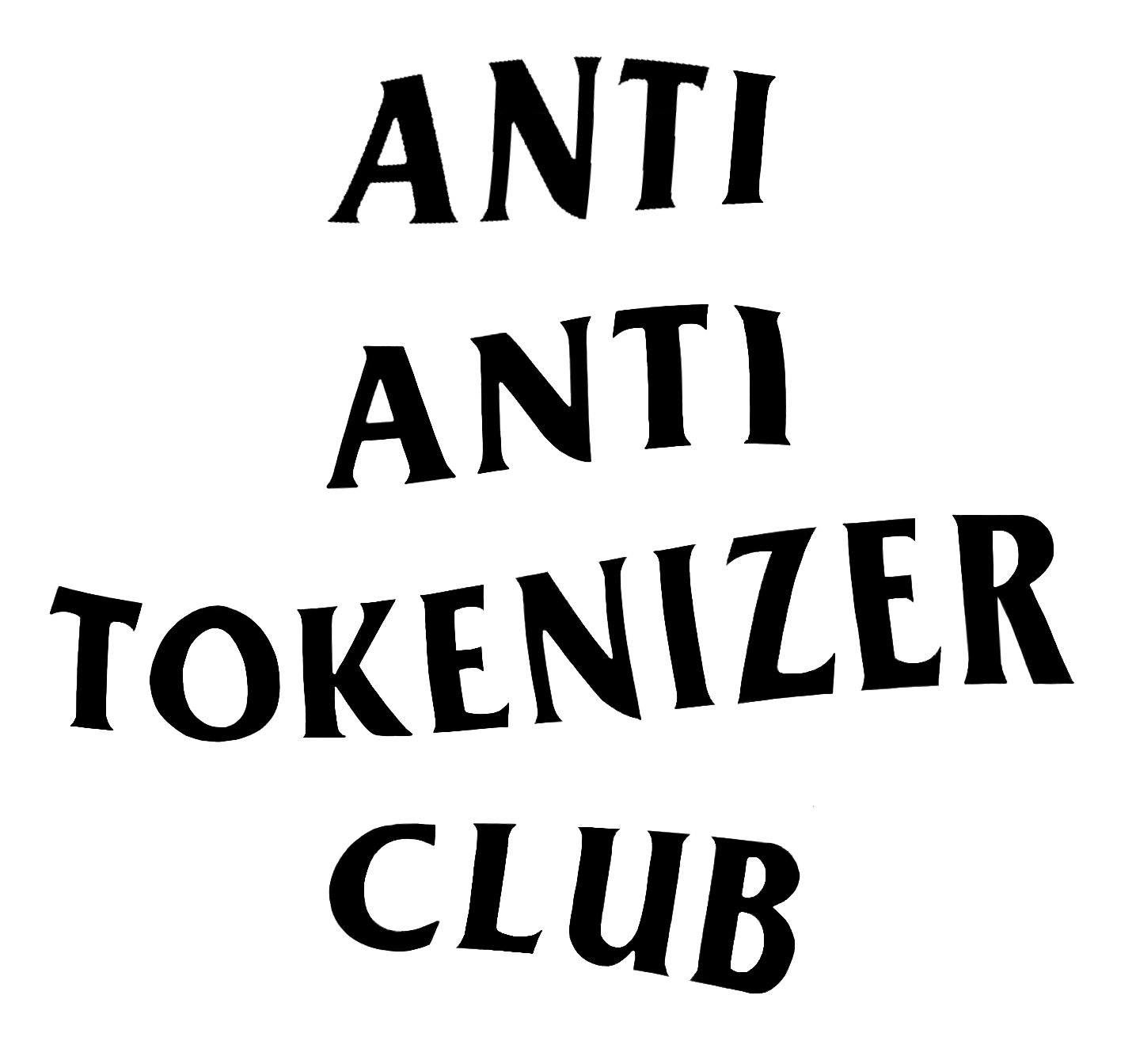 On a personal level, I also want to foster more engagement with the tokenization literature. Regardless of whether you are pro- or anti-tokenization, more people to be working on issues related to tokenizers, the faster we’re going to make progress. For those that think they are taking a “tokenizer-free” approach, I argue that these approaches are just other kinds of tokenization. And incorporating the findings from static subword tokenization research can only help develop better alternatives.