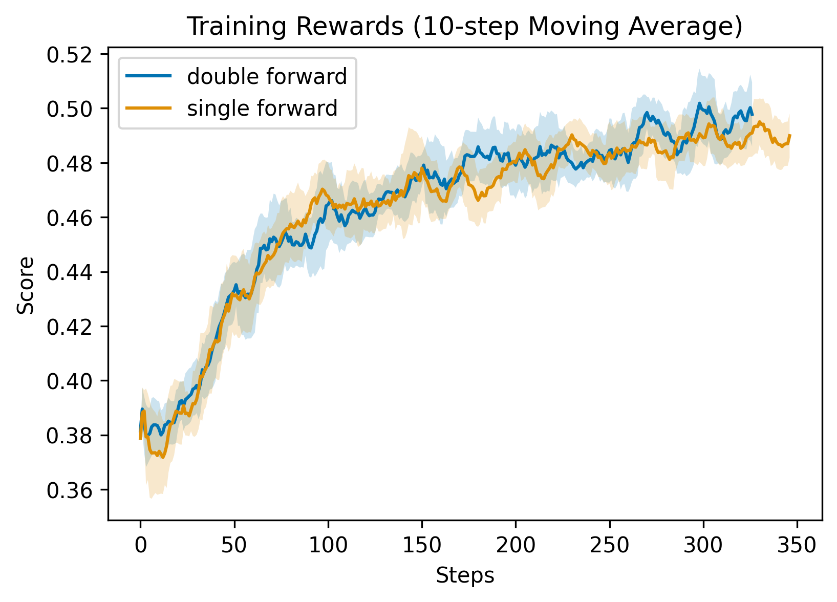 - Simple REINFORCE-like algorithms are surprisingly effective: We compared different RL algorithms and concluded that value model-free REINFORCE-like methods are powerful enough.