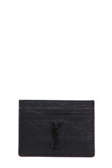 A black, rectangular, hard-sided suitcase with a red logo on the front and a silver handle on the top. The suitcase has a zipper closure and is placed against a white background.