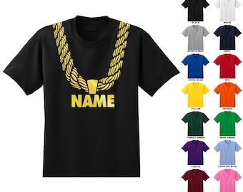 0128a308 Custom personalized gold chain t-shirt adult, you choose the text, metallic gold print hip hop funny