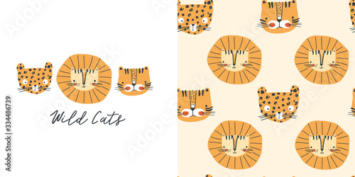 Wild cats. T-shirt design and seamless pattern for kids Canvas Print