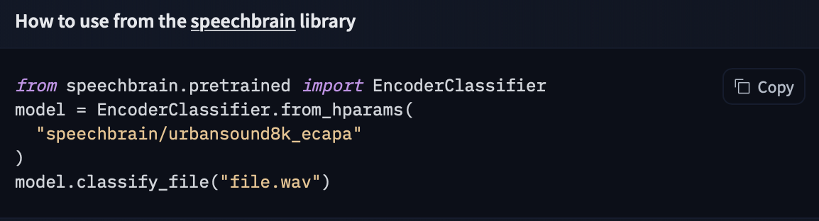 If you want to see how to load a specific model, you can click Use in speechbrain and you will be given a working snippet that you can load it!
