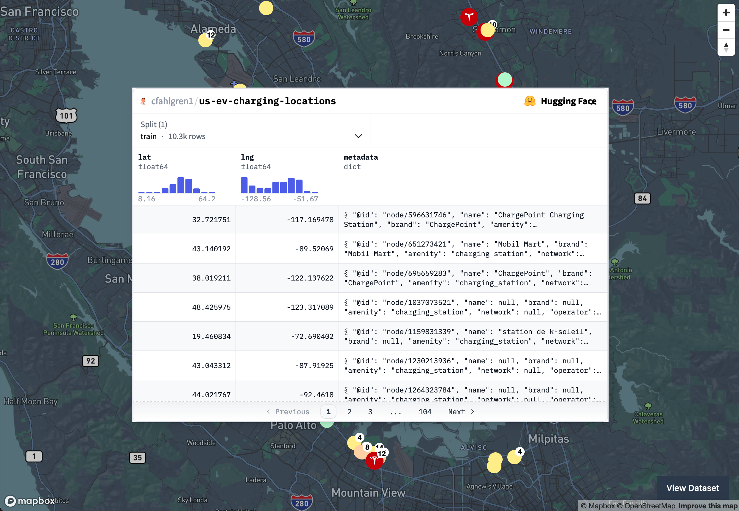 cfahlgren1 embeds the dataset viewer in the Electric Vehicle Charge Finder app.