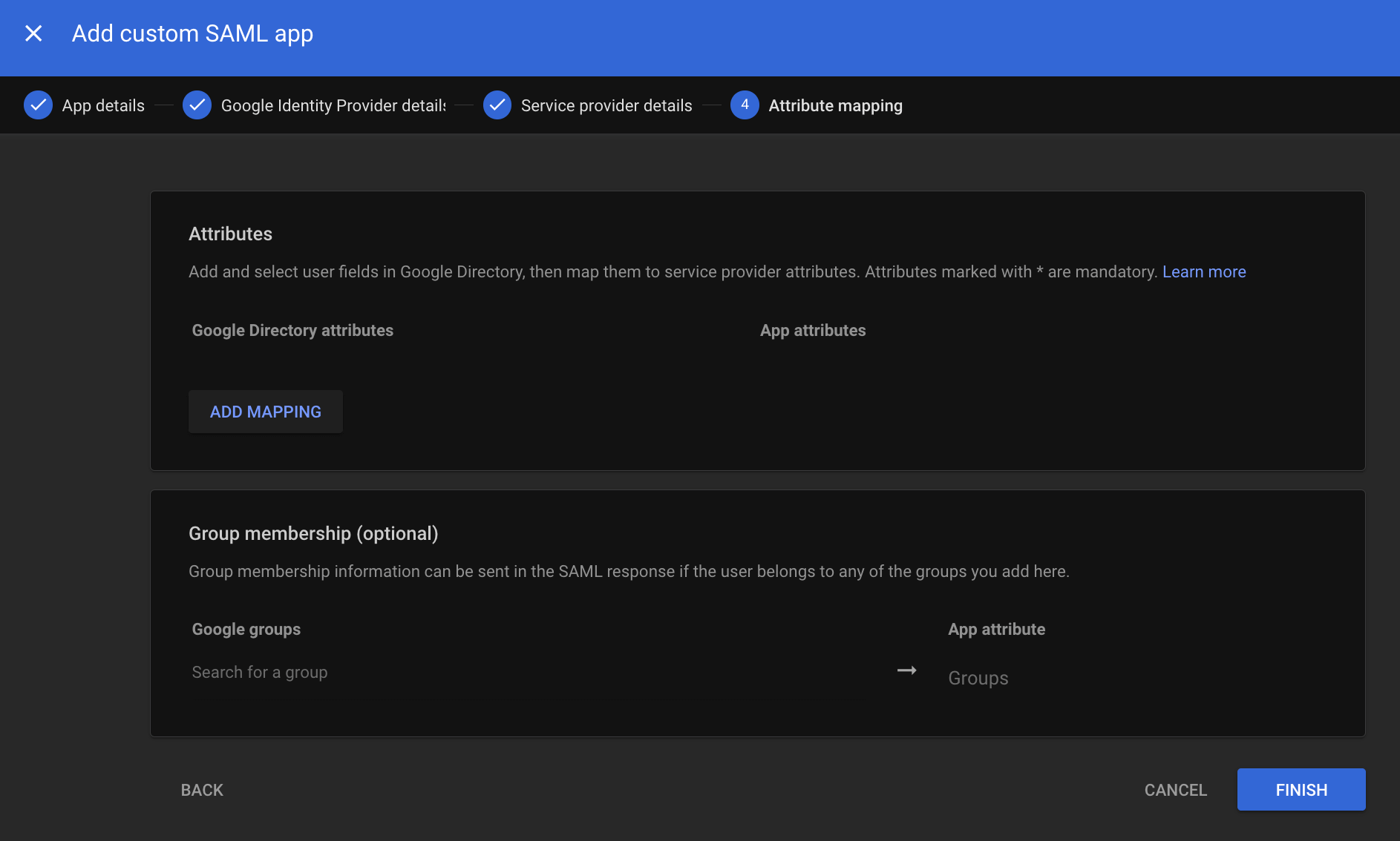 - On the “Attribute mapping” screen, click