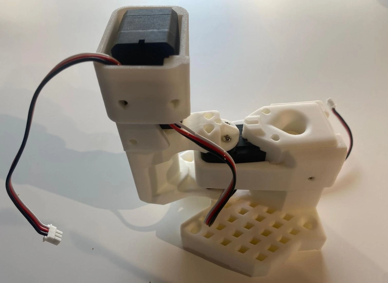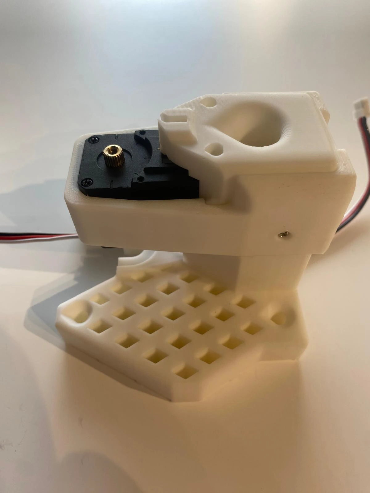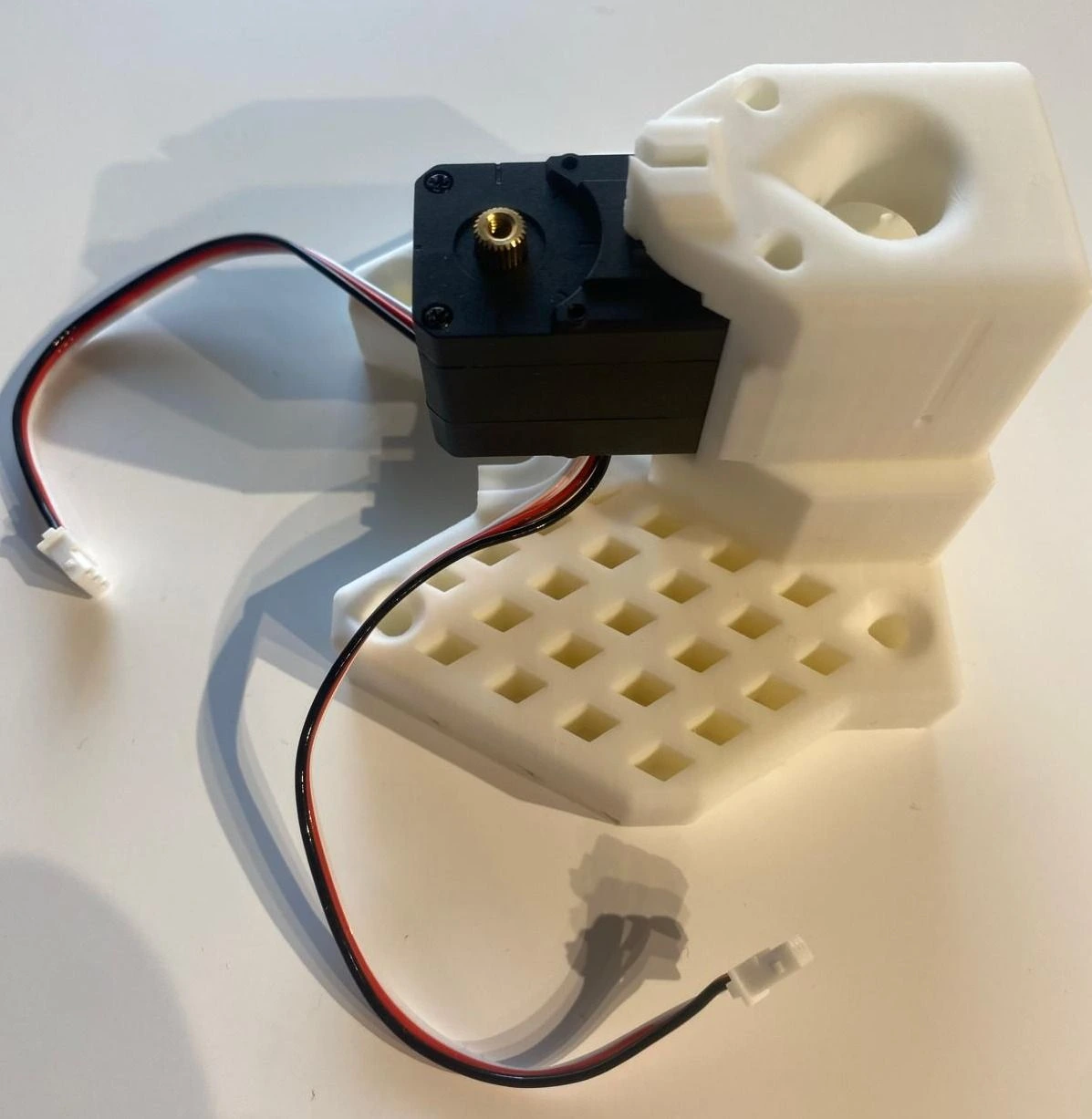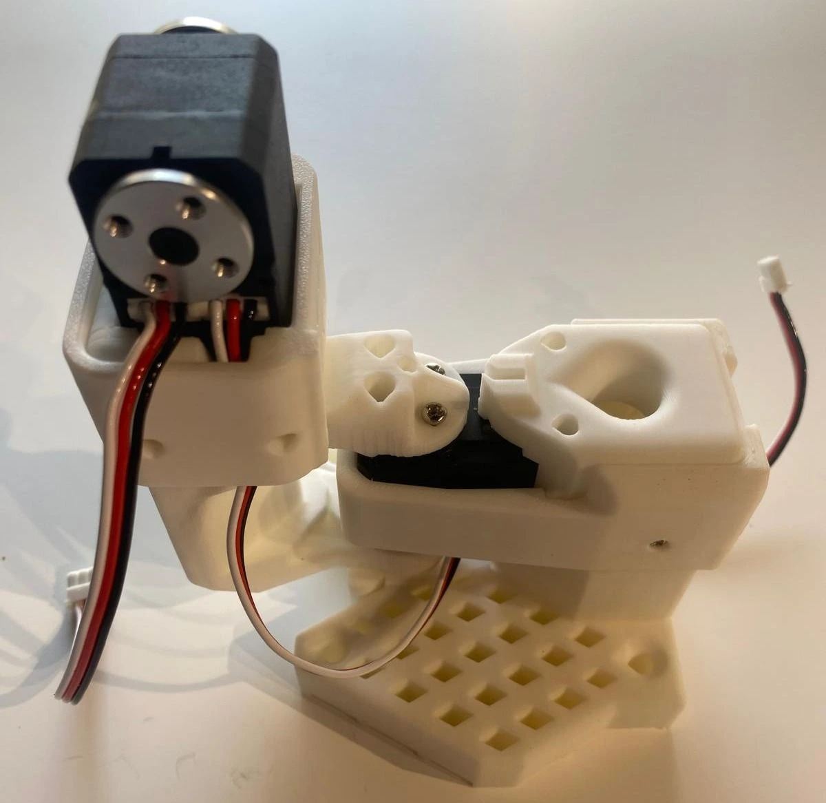 - Insert the gripper motor, secure it with 3 screws on each side, attach a motor horn using a horn screw, and connect the motor wire.