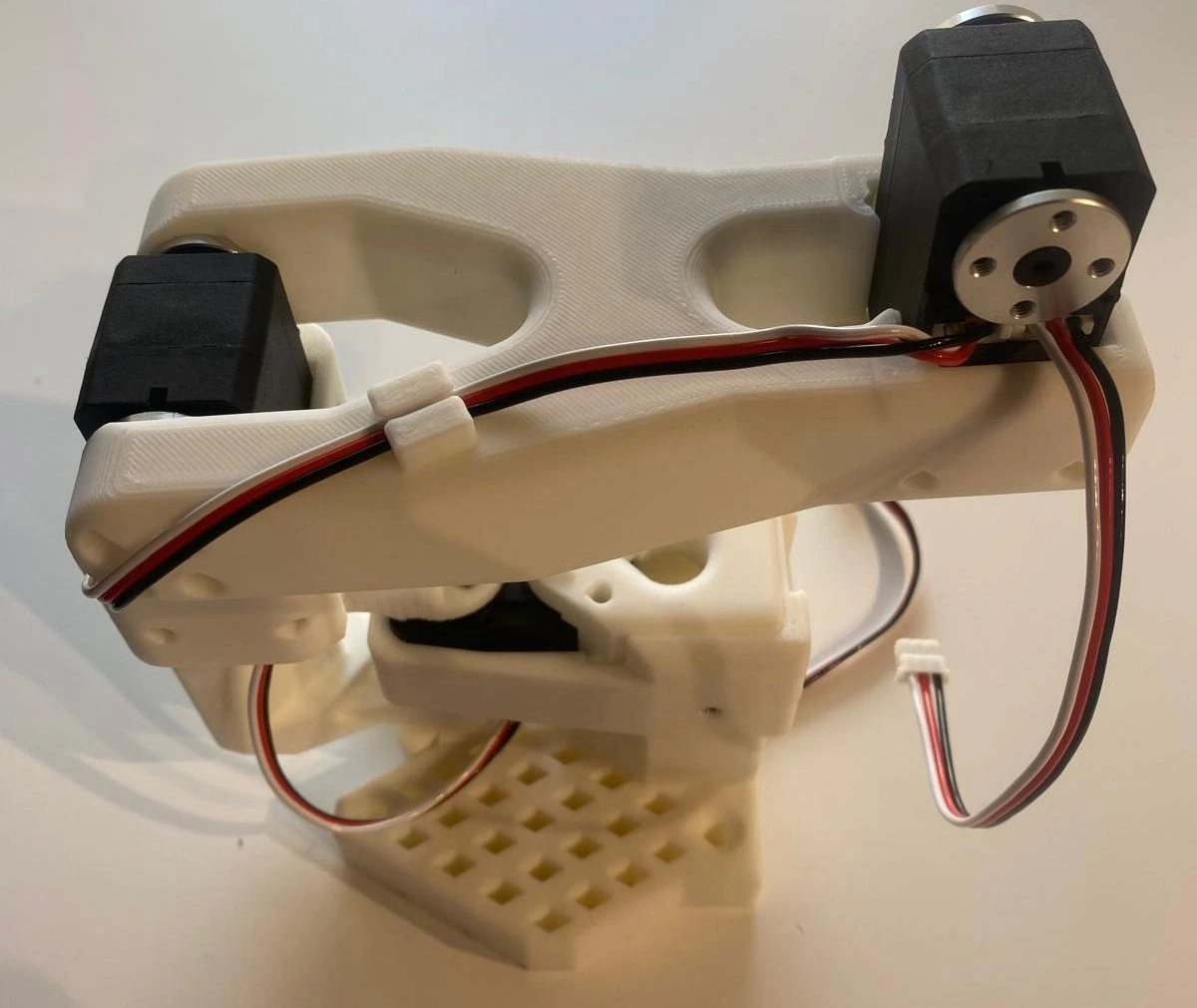 - Route the motor cable from motor 2 through the cable holder to motor 3, then secure motor 3 with 4 screws.