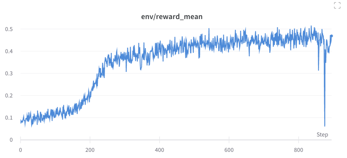 pyserini-wikipedia-kilt-docspace as the wiki tool and only uses the first paragraphs of the search result, allowing theTextEnvironmentto obtain at mostmax_tool_reponse=400response tokens from the tool. - test if the response contain the answer string, if so, give a reward of 1, otherwise, give a reward of 0.