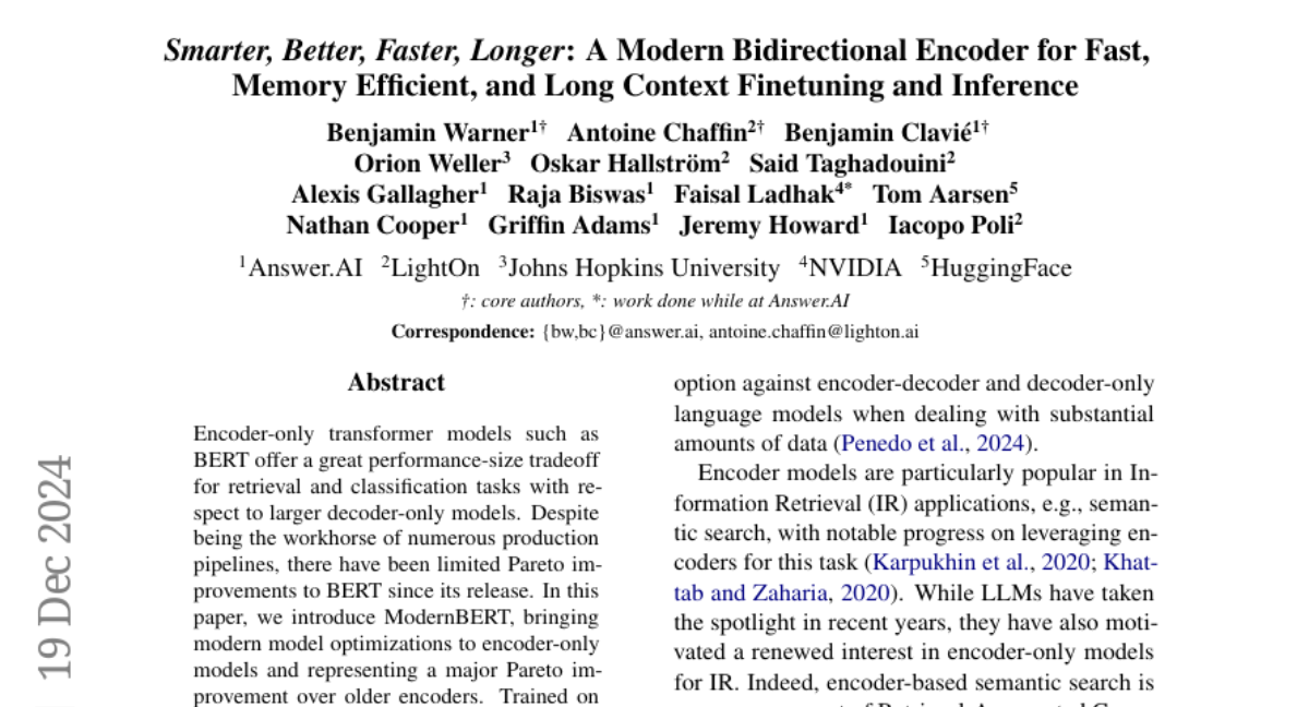 Finally, a Replacement for BERT: Introducing ModernBERT