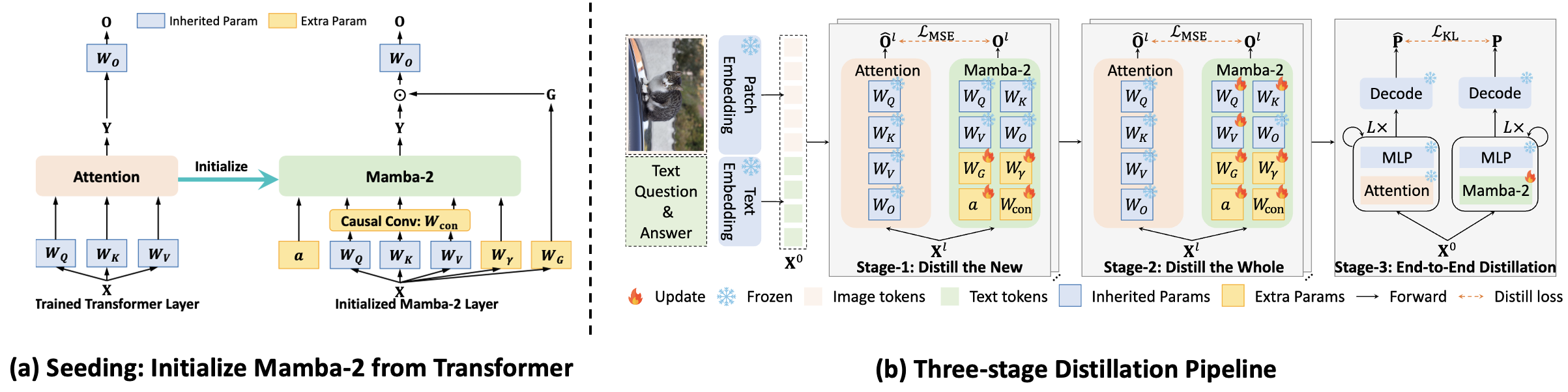 Seeding strategy and three-stage distillation pipeline of mmMamba.