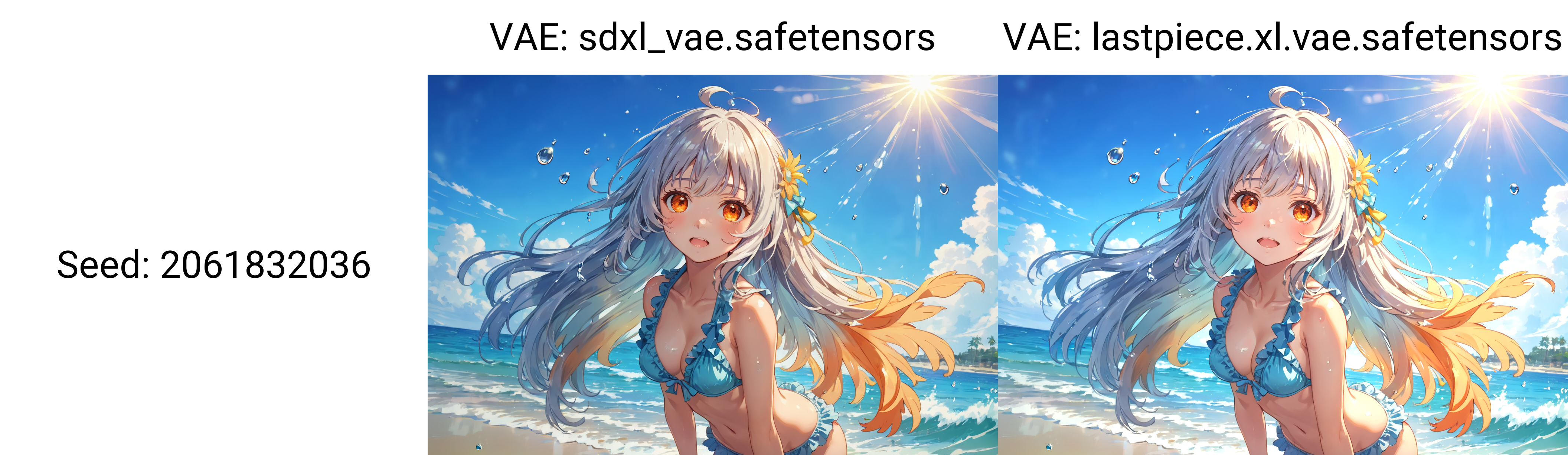 Like LastpieceCore, it is adjusted to produce stronger color and coloration, and a dedicated VAE is also available.