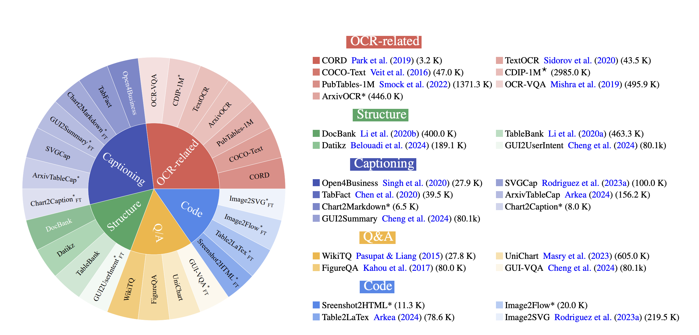 multimodal documents across 30 tasks. We use an efficient data curation process