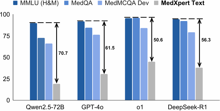 MedXpertQA is a highly challenging and comprehensive benchmark to evaluate expert-level medical knowledge and advanced reasoning. It features: