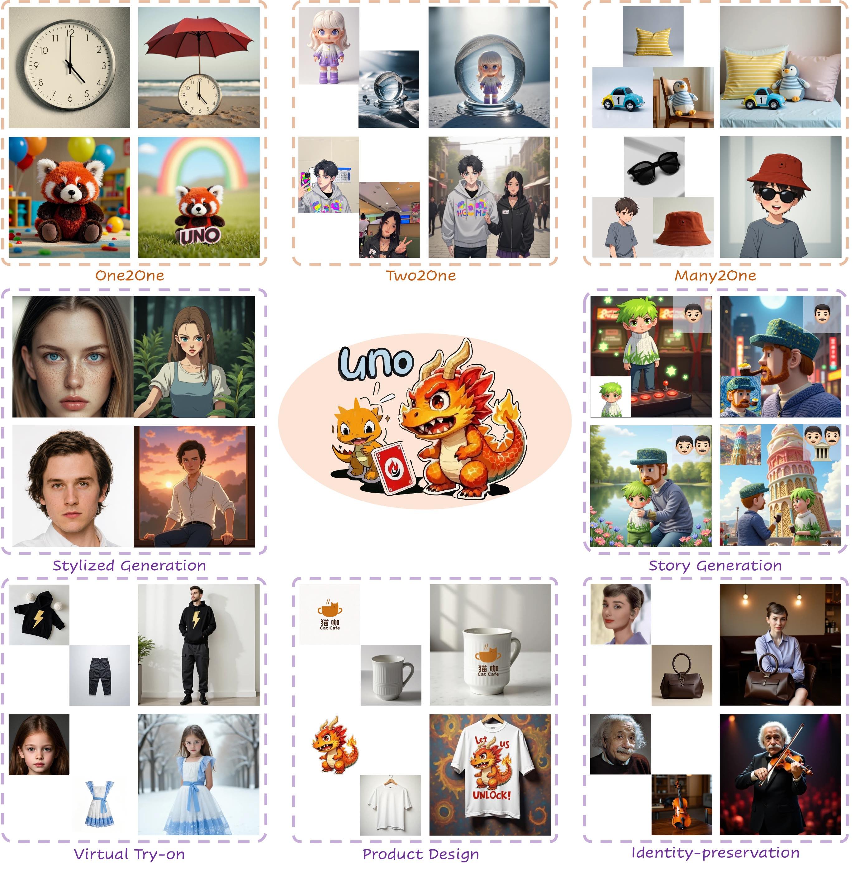 š„š„ We introduce UNO, a universal framework that evolves from single-subject to multi-subject customization. UNO demonstrates strong generalization capabilities and is capable of unifying diverse tasks under one model.