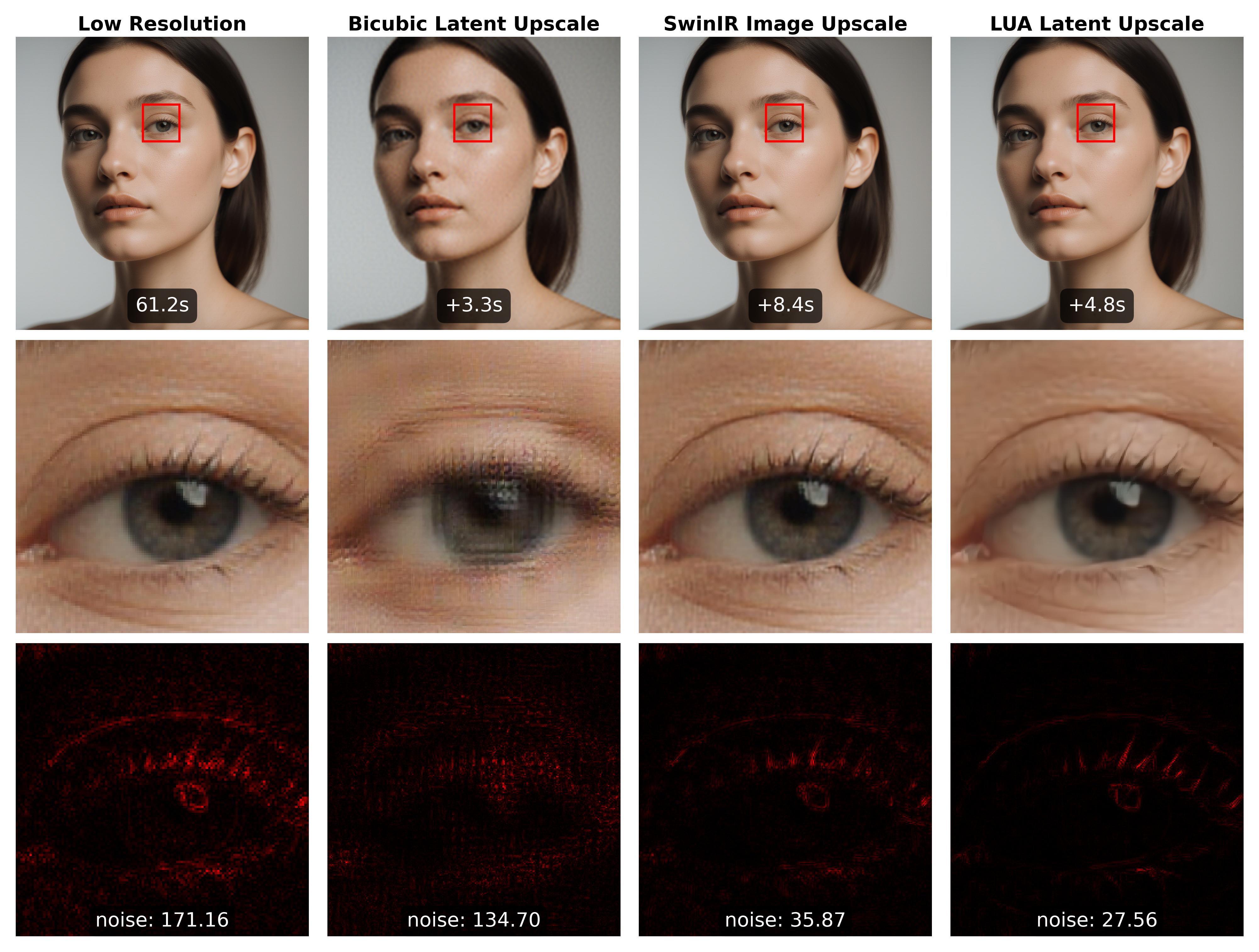 We show that high-res synthesis can be done by upscaling in latent space instead of pixels, keeping a single final decode. This preserves quality while cutting latency and works across scales.