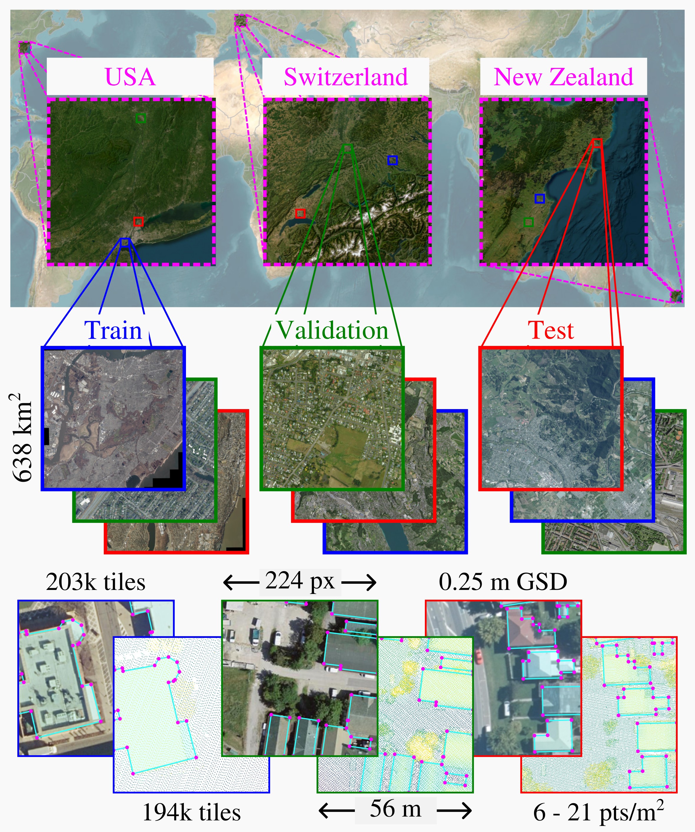 - A global, multimodal dataset of aerial images, aerial LiDAR point clouds and building outline polygons, available at huggingface.co/datasets/rsi/PixelsPointsPolygons