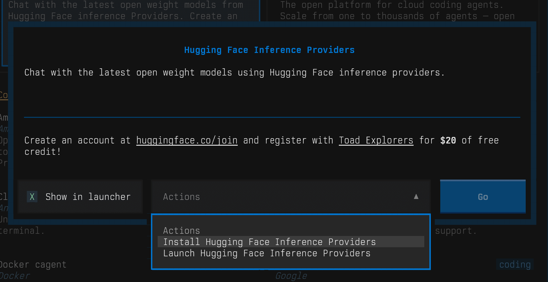 Explore the best open models with Toad and Hugging Face Inference Providers.