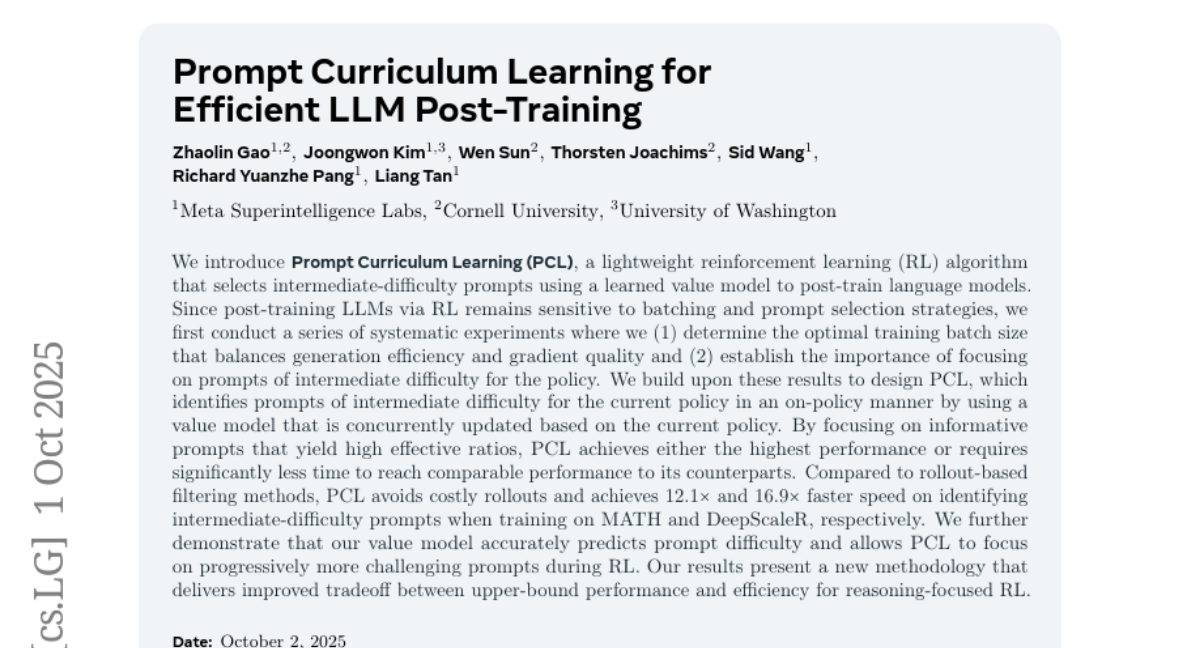 Prompt Curriculum Learning for Efficient LLM Post-Training