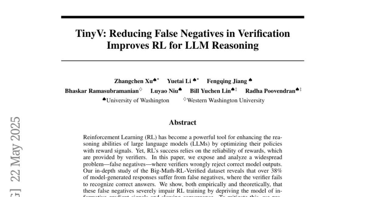 TinyV: Reducing False Negatives in Verification Improves RL for LLM Reasoning